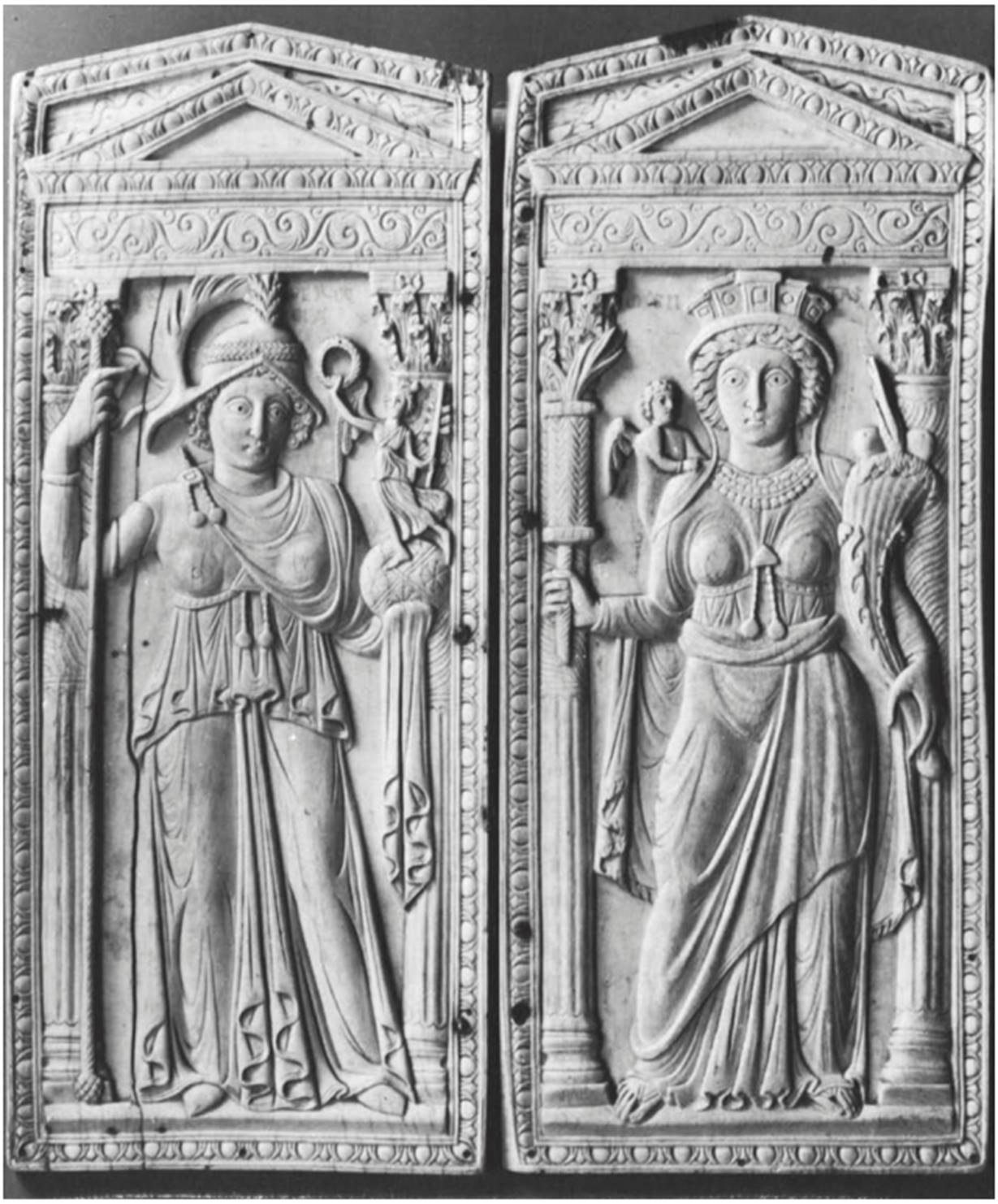 Diptych with Roma and Constantinopolis. Constantinople (?), late 5th-early 6th century. Ivory