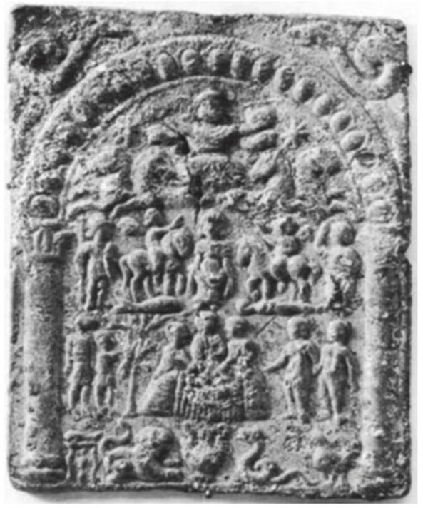 Combined with the other images, which relate to celestial, terrestrial, and chthonic realms, they imply a complete cosmology arranged in an architectonic hierarchy, consistently set forth on most of the monuments. These plaques seem to be products of the frequent displacements of both the military and civilian populations during the third century along the constantly disputed Danube border. The hairdo of the woman in the second register recalls that of some later Severan women, suggesting production in the second quarter of the century.