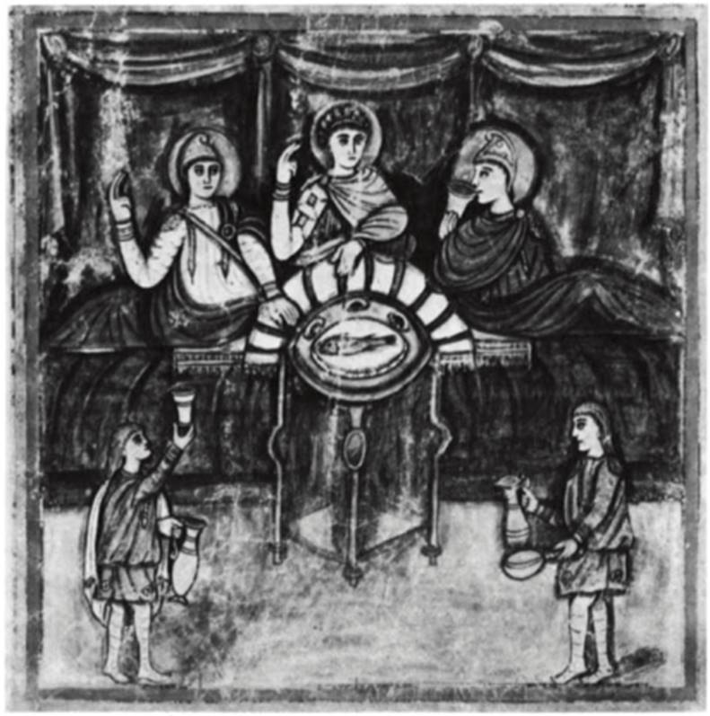 Through comparison of miniature 13 with a similar scene in a Constantinian sarcophagus in Modena, Rodenwaldt (1934, p. 295) attributed the manuscript to northern Italy and dated the prototype to the fourth century. Yet the date and provenance of the Vergilius Romanus are still much disputed, largely because of the unclassical style for which there exists no good parallel. An origin in Gaul has also been proposed. Since none of the ten Aeneid pictures illustrates a passage that also appears in the Vergilius Vaticanus, the picture cycles cannot be compared. The Vergilius Romanus may have been taken to northern Europe by Charlemagne (Bischoff, 1965); it was at St. Denis until the fifteenth century, when it came by uncertain means to the Vatican. Bibliography: Picturae, 1902; Weitzmann, 1959, pp. 60-61; Bischoff, 1965, pp. 46, 61-62; Carandini, 1968, p. 348; Rosenthal, 1972, pp. 54-57, 60-63.
