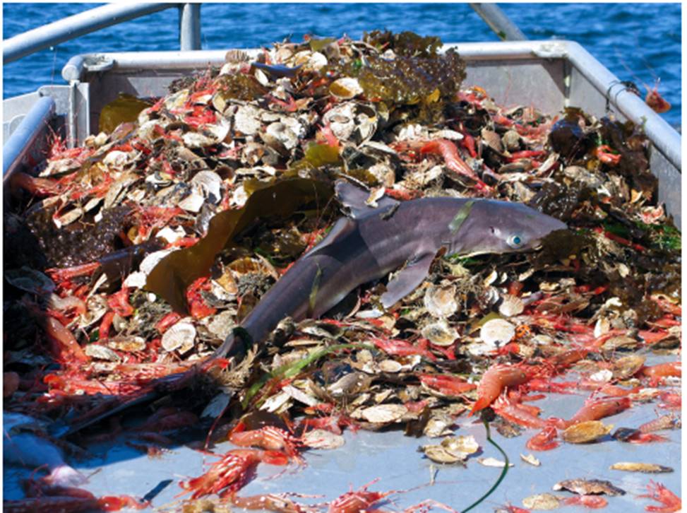 Another serious problem is the unintended harvest of species. An estimated 20 percent of the global fisheries catch constitutes an unwanted bycatch that is discarded. Shrimp fisheries produce the largest bycatch and small pelagic fisheries the least. Bycatch also consists of the incidental take of endangered marine mammals, turtles, and seabirds, although recent advances in gear technology are reducing these impacts. Lastly, approximately 35 percent of the global annual catch is captured on nontropical continental shelves, which occupy only 5 percent of the total ocean area. In order to sustain these fisheries, it is estimated that current harvest levels on nontropical continental shelves require 36 percent of their total primary productivity.