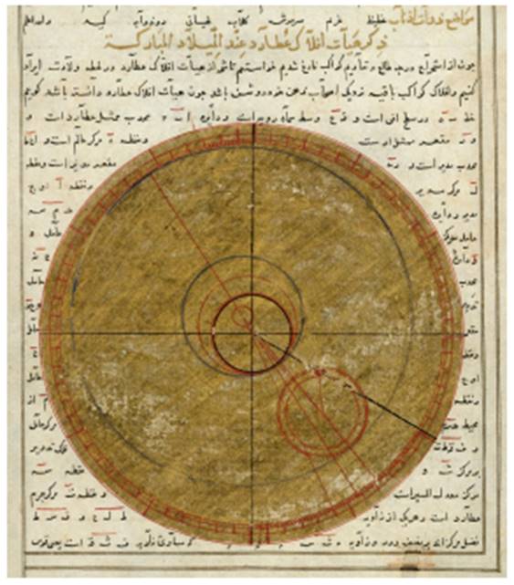 Illustration of an astrolabe, from the book of the birth of Iskandar, c. 1411. An astrolabe was a type of scientific instrument used by early astronomers and seafarers to determine the position of celestial bodies (Wellcome Library, London)