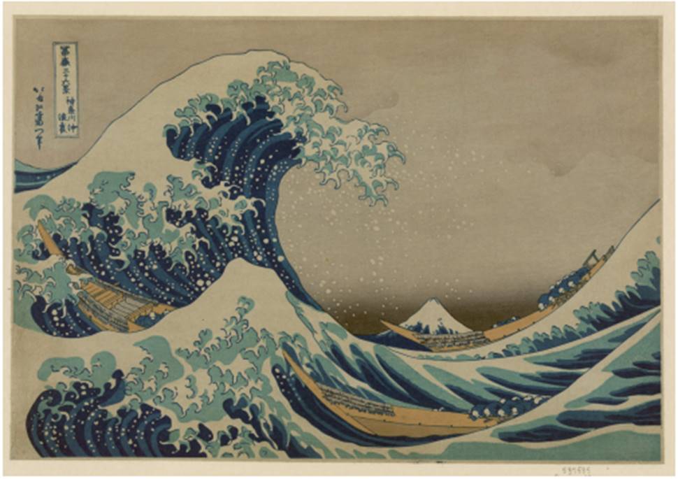 Iconic woodblock print The Great Wave off Kanagawa by Katsushika Hokusai, c. 1829-33 (Library of Congress)