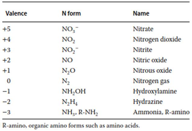 Table 1. Common forms of N and their valence states