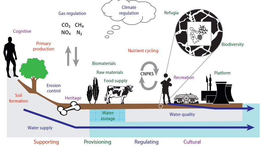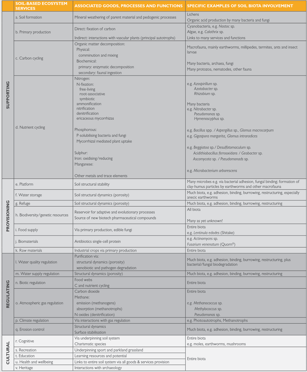 Table. 4.1: A list of the ecosystem services along with example organisms which provide the services. From Haygarth and Ritz (2009)