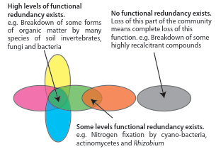 Fig. 4.3: A Schematic representation showing different levels of functional redundancy for different examples of ecosystem functions