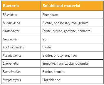 Table 4.2: Selected examples of bacteria solubilising minerals