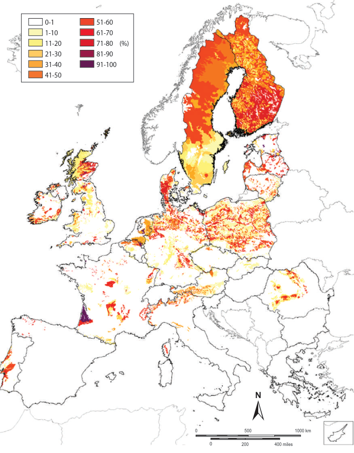 Fig. 4.5: Distribution of Podzols in the European Union