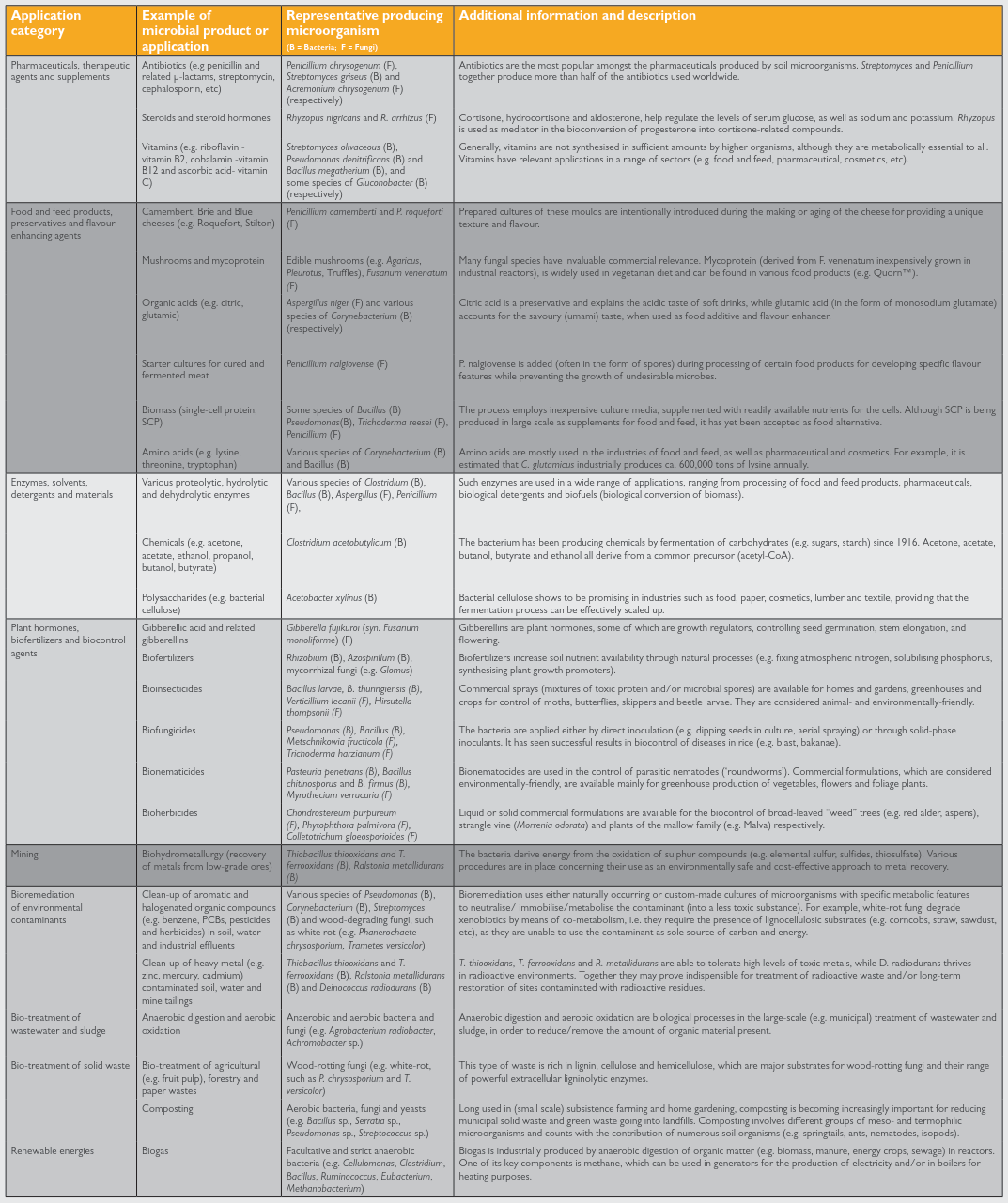 Table 4.4: A selection of biotechnologies which rely on soil organisms, including examples of species used