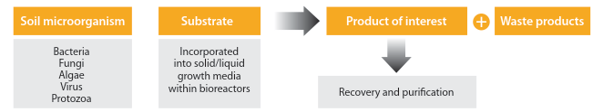 Fig. 4.18: Typical steps in microbial-based industrial production of relevant compounds