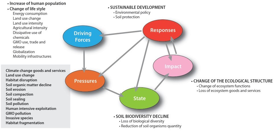 Fig. 5.1: Driver Pressure State Impact Responses framework applied to soil biodiversity