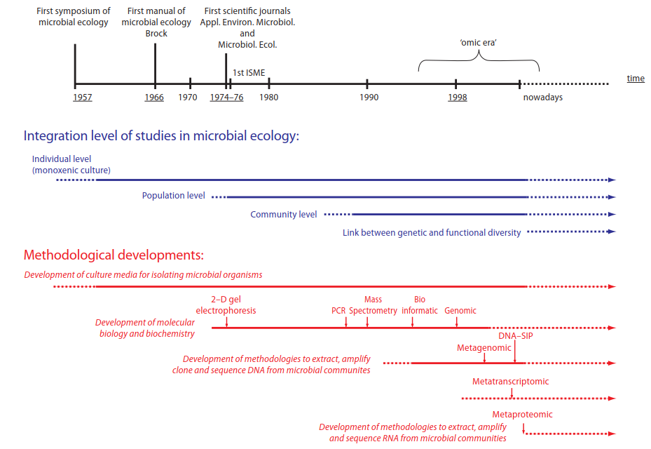 Fig. 7.1: Historical and salutatory evolution of microbial ecology (from Maron etal, 2007)