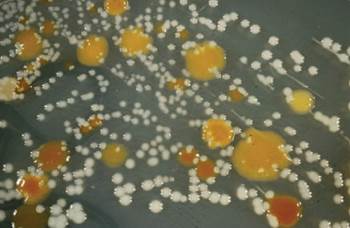 Fig. 8.2: Bacterial cultures isolated from soil growing on a synthetic growth medium. Each dot represents a colony of microorganisms that started as just one cell
