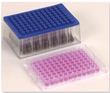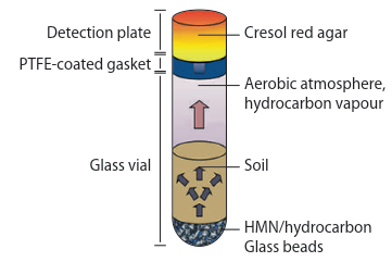 Fig. 8.4: Biochemical tests can be performed on both soil extracts and whole-soil and the rates of reaction measured to give a metabolic profile. For example, in one form of biochemical test, homogenised soil is added to plates containing a range of substrates (top right). After incubation for a period of time the CO2 respired as the microbial community utilises the different substrates reacts with a chemical in the gel leading to a change in colour (right). By analysing the amount of colour change it is possible to calculate the amount of CO2 respired by the community in response to different substrates and so differences in the metabolic abilities of microbial communities from different areas or exposed to different stressors can be quantified