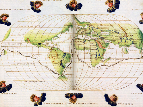 A map of Magellan’s route from a portolan atlas by Battista Agnese, c. 1544. In addition to Magellan’s route of circumnavigation, the map reflects the extent of European knowledge of world geography within fifty years of Columbus’s 1492 arrival in the Caribbean (Library of Congress).