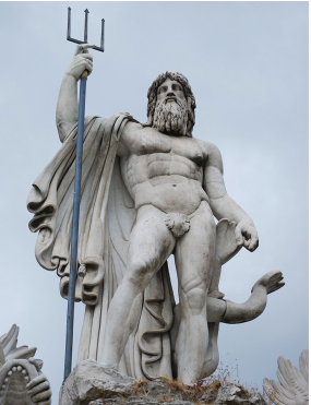 A statue of Poseidon holding his trident, located in Piazza del Popolo, Rome, Italy. In Ancient Greek mythology, Poseidon was considered the god of the sea, and his weapon and main symbol was the trident (Morenina/Dreamstime.com).