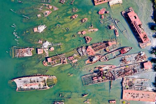 Aerial view from above of abandoned ships at Arthur Kill Boat Graveyard in Staten Island, New York (Demerzel21/Dreamstime.com).