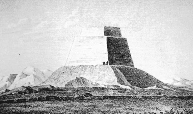 Fig. 3.3. The pyramid at Meidum. Built at a steep angle, the outer casing of the pyramid at Meidum collapsed around its central core during construction