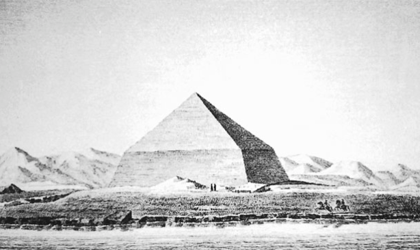 Fig. 3.4. The Bent pyramid. The lower portion of this pyramid rises at the same angle as the pyramid at Meidum, but ancient Egyptian engineers reduced the slope for the upper portion to ensure its stability. The Bent and Meidum pyramids were apparently constructed concurrently with engineers decreasing the angle of the Bent pyramid once they learned of the failure at Meidum