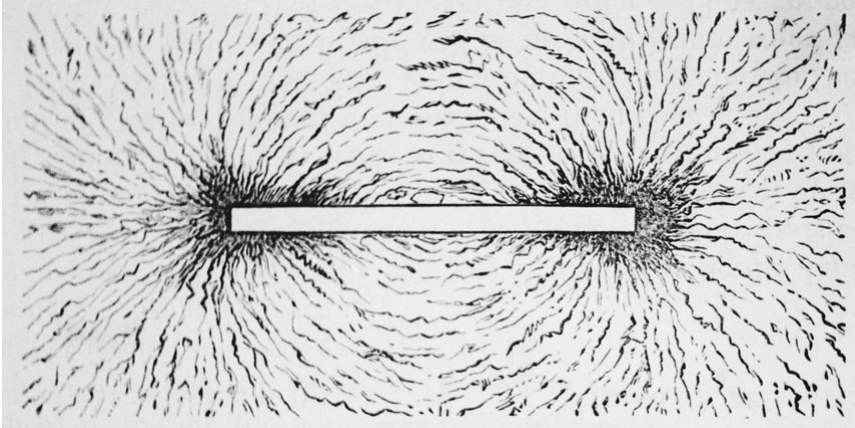 Fig. 15.2. Faraday’s lines of force. Michael Faraday postulated that lines of force occur in a field surrounding a magnet. He illustrated this proposition by observing patterns that iron filings form in the space around a magnet.