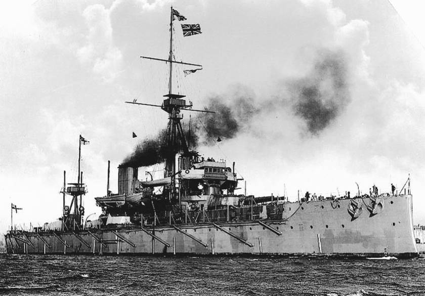 Fig. 15.4. The Industrialization of War. Launched in 1906, the HMS Dreadnought was the most formidable armored battleship of its day. With a main battery of ten 12-inch guns, driven by a steam turbine power-plant, and capable of a speed of 21 knots, this revolutionary vessel surpassed every previous warship in design and military capability and was testimony to the might of industrial civilization in Britain.