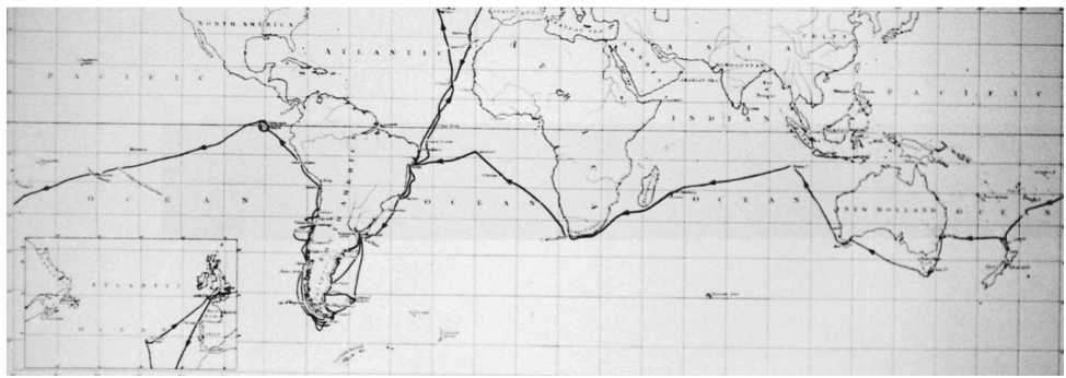 Map 16.1. The voyage of the Beagle. Charles Darwin sailed as naturalist aboard the HMS Beagle on its five-year voyage to map the coasts of South America (1831-36). A keen observer, Darwin became exquisitely sensitive to the distribution of plants and animals, particularly on the Galapagos Islands off the coast of Ecuador which he visited toward the end of his voyage. He returned to England convinced of the fact of evolution but struggled to articulate a theory or mechanism to account for evolutionary change.