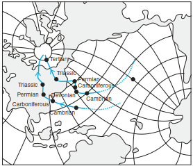 - Continuous migration of the continents in relation to the poles. According to measurements of palaeomagnetism, the magnetic North Pole in the Cambrian was in the Pacific, not far from the current location of the Japanese island group, whereas it was in north-eastern Asia in the Triassic (Fig. 17.1).