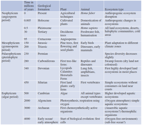 Table 17.1. Putative evolution of life forms and ecosystems during Earth’s history (after Kreeb 1983)