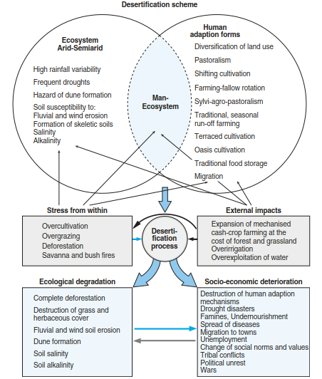 Fig. 17.20. Scheme of process of desertification. (after Ibrahim 1988)