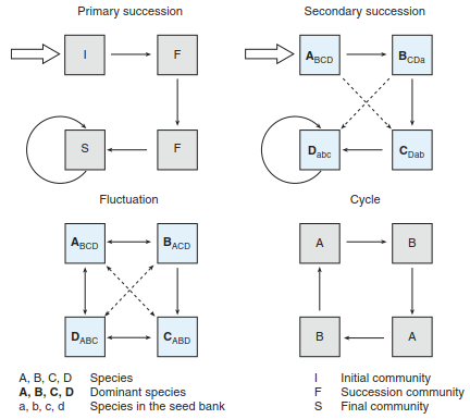 There are several definitions and a multitude of different types of disturbances (Box 17.4). Secondary succession sequences may be classified according to the responses to disturbance (regarding the material balance of an ecosystem):