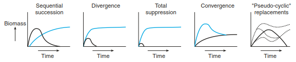 Fig. 17.41. Possible behaviour of two species over the course of succession. (after McCook 1994)