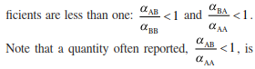 The coexistence of the two species is possible if either species can invade a monoculture of the other species. For example, species B can invade a monoculture of species A if the effect of A on itself is larger than that on B: aAA > aBA and aBB > aAB (Chesson 2000). In simple words: coexistence requires intraspecific competition to be stronger than interspecific competition. (Coexistence is achieved if the relative competition coef