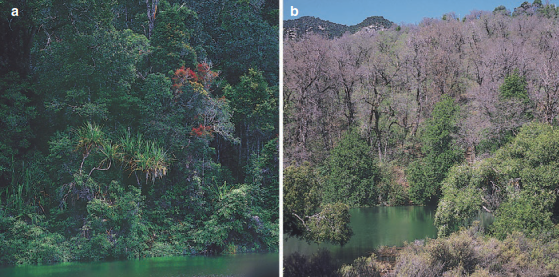In closed stands, the presence of strata of different heights caused by different life forms, intertwining with lianas, as well as standing or lying dead woody debris, increases structural diversity (Fig. 20.5). In addition, the architecture of the canopy can differ widely depending on the different growth forms of the plants. Such structures, in turn, provide habitat for many other organisms like birds, insects, epiphytes and lichens. According to the resource heterogeneity hypothesis and niche theory (Huston 1979) (Sect. 19.3), a larger variety of resources provide niches for other organisms with distinct requirements for habitat, food or environmental conditions.