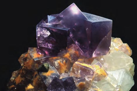 Cubic crystal of fluorite, about two inches (5 cm) on each face, on quartz with barite from Frazer’s Hush Mine, Weardale, England (Mark A. Schneider/Photo Researchers, Inc.)