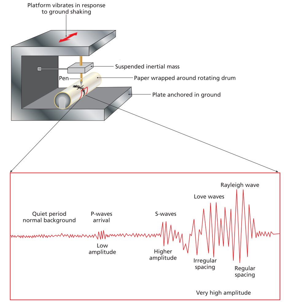 Seismograph Technology and Earthquake Measurement. Seismographs constitute the primary instruments for measuring earthquake intensity, utilizing an ink-filled stylus to record ground movements on continuously rotating graph paper, with modern digital versions capturing data directly for computational analysis. When ground shaking occurs, the stylus produces characteristic zigzag traces that clearly display the sequential arrival of P-waves, S-waves, and surface waves. These instruments operate on inertial principles, employing a heavy mass suspended from a string or spring that remains stationary during ground motion due to inertia—the resistance of large masses to sudden movement. The recording paper attached to the moving ground traces the seismic motion while the stylus remains stationary, enabling precise measurement. Seismographs are deployed in series as pendulums and springs to record ground motion across multiple directions, with sensitivity capable of detecting motions as small as one hundred-millionth of an inch—equivalent to sensing ground vibration from a car several blocks away.