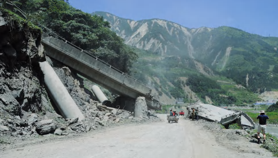 A second photograph of damage from ground shaking and landslides in Hongkon, Sichuan Province, China, from May 12, 2008, magnitude 7.9 earthquake