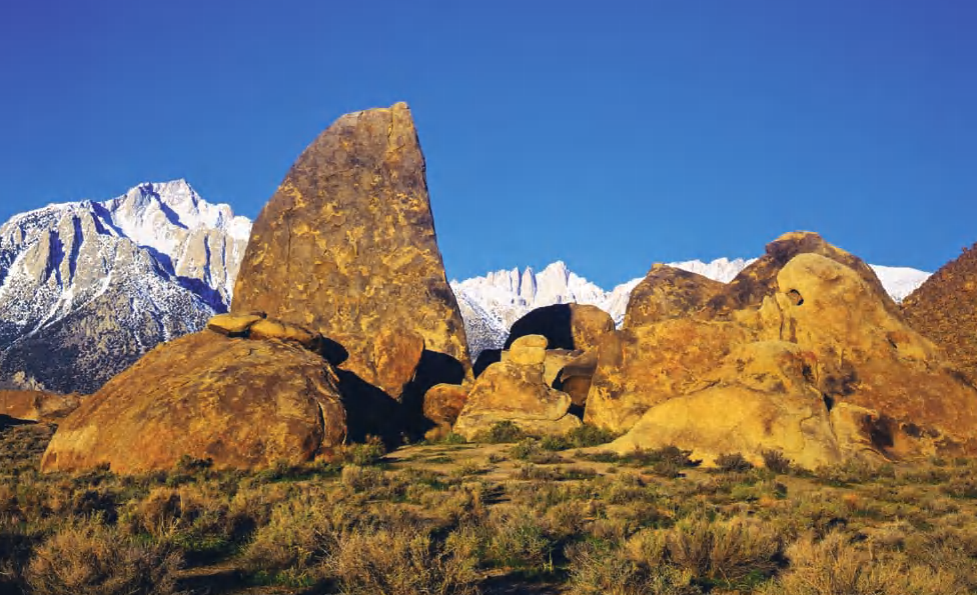 Mount Whitney and Alabama Hills outside Lone Pine, California. These mountains form part of the Sierra Nevada granite batholith